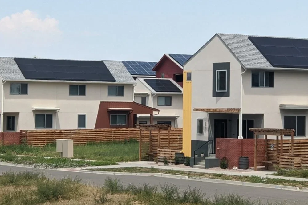 Modern homes with solar panels.